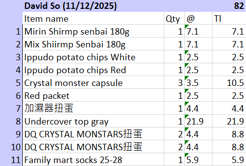 | 11 | Family mart socks 25-28 | 1 | 5.9 | 5.9 |