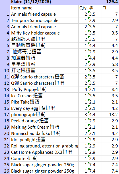| 11 | Q彈 Sanrio characters扭蛋 | 2 | 3.5 | 7 |