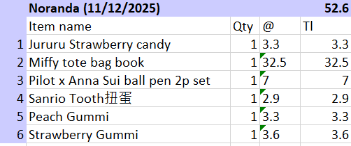 | 2 | Miffy tote bag book | 1 | 32.5 | 32.5 |